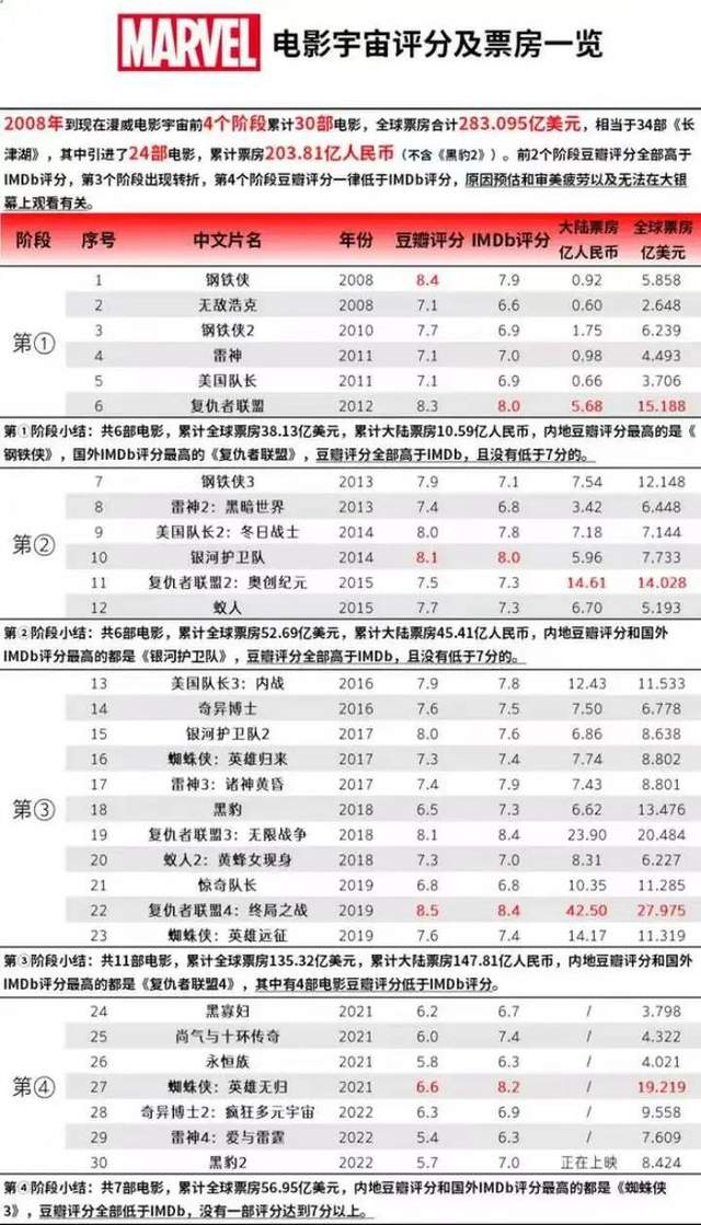 圖/漫威電影評(píng)分及票房預(yù)覽 來(lái)源/后浪電影