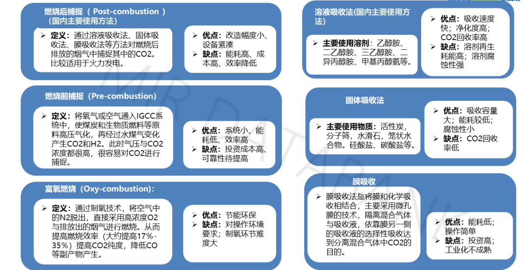 目前,有以下幾種比較普遍的碳捕集方式: