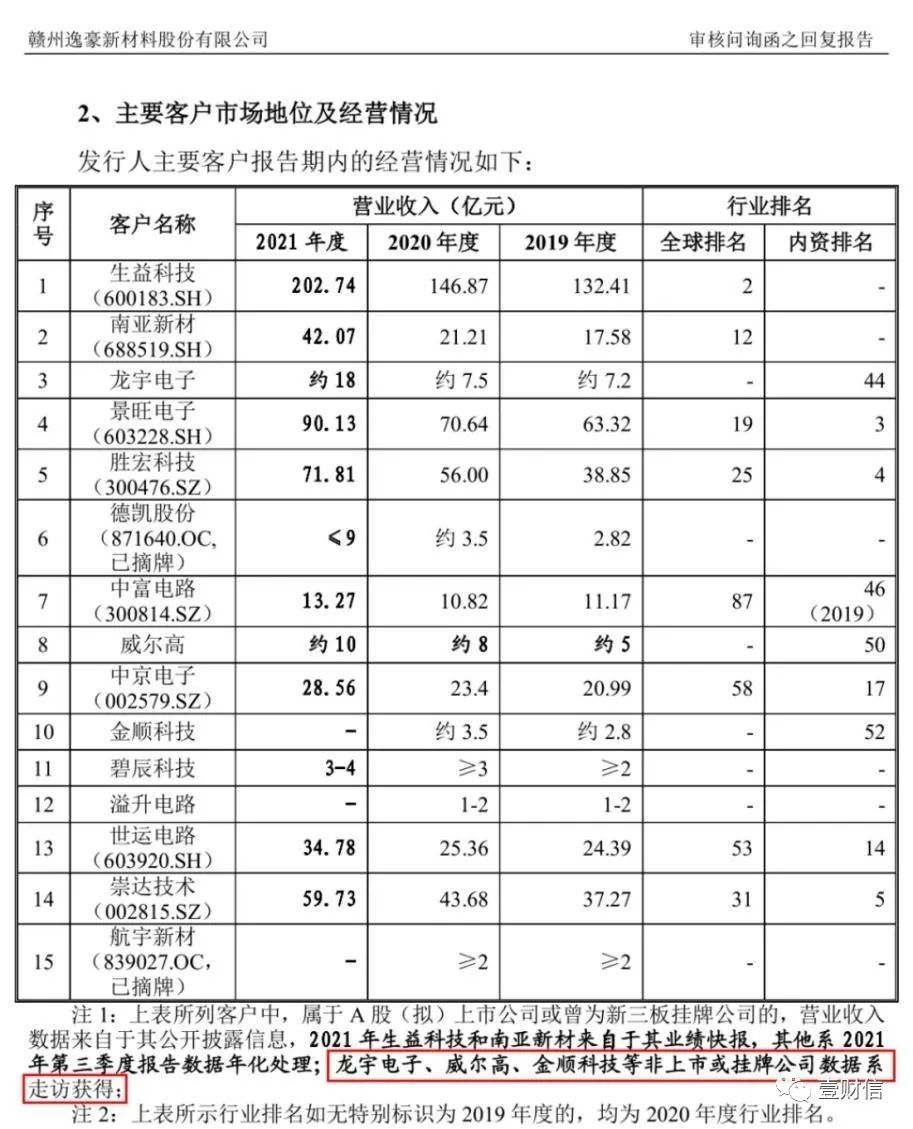 逸豪新材在其問詢回復(fù)報告中同樣介紹了威爾高的基本情況,逸豪新材經(jīng)走訪獲得客戶威爾高在2019年至2021年的營業(yè)收入,分別為約5億元、約8億元、約10億元。