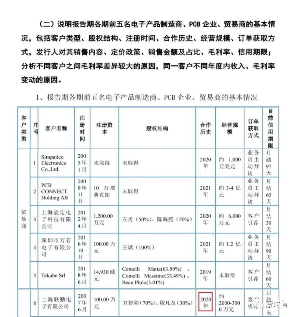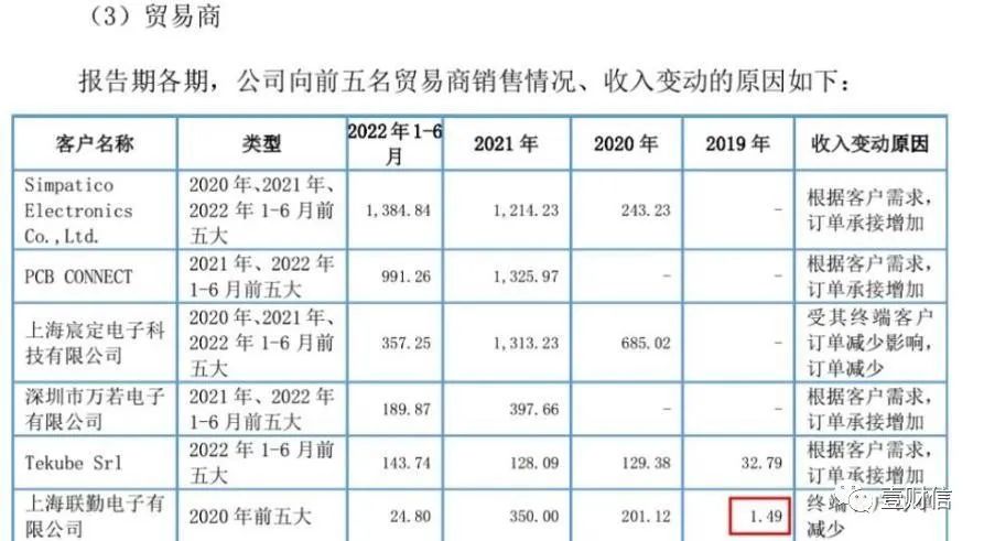 另外,一輪問詢回復(fù)還顯示,公司與貿(mào)易商上海聯(lián)勤電子有限公司(下稱:上海聯(lián)勤)的合作歷史始于2020年,一輪問詢回復(fù)另一處則顯示公司在2019年即對上海聯(lián)勤產(chǎn)生了1.49萬元的銷售金額。
