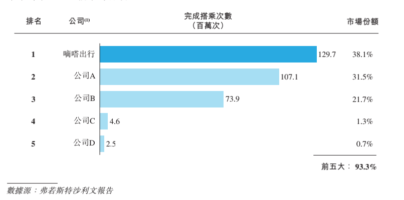 根據(jù)招股書,2021年國(guó)內(nèi)順風(fēng)車市場(chǎng)中,前3大順風(fēng)車平臺(tái)市占率合計(jì)為91.3%。其中,嘀嗒出行市場(chǎng)占有率第一為38.1%。