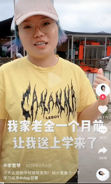 李雪琴也曾在抖音上稱,寵物狗“老金”順利從寵物學(xué)校畢業(yè),綜合評(píng)分80分。