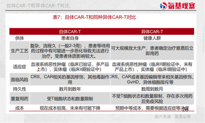 從眼下的數(shù)據(jù)來看,異體CAR-T和自體CAR-T相比,無論是療效還是持久性都還存在著一定的差距。受限于免疫排斥反應(yīng),目前的異體CAR-T只能做到低價(jià),但做不到高效。