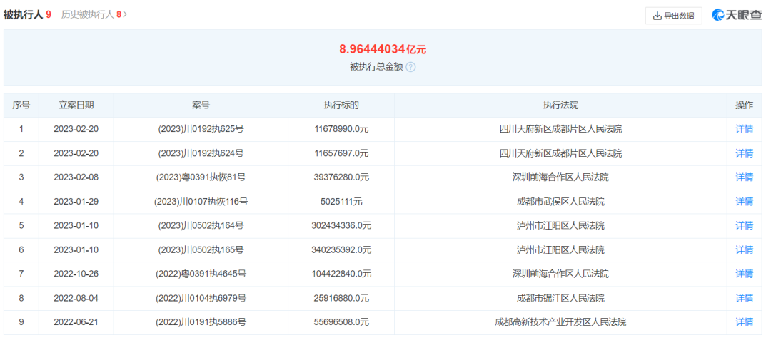 具體到此次摘牌的成都希頓酒店,據(jù)公開資料顯示,成都希頓酒店當(dāng)前業(yè)主方為成都喬治希頓房地產(chǎn)開發(fā)有限公司希爾頓酒店分公司,其母公司為成都喬治希頓房地產(chǎn)開發(fā)有限公司,自2022年6月以來,該公司共涉及9起被法院執(zhí)行案件,涉及被執(zhí)行總金額達8.96億元,經(jīng)營狀況并不健康。