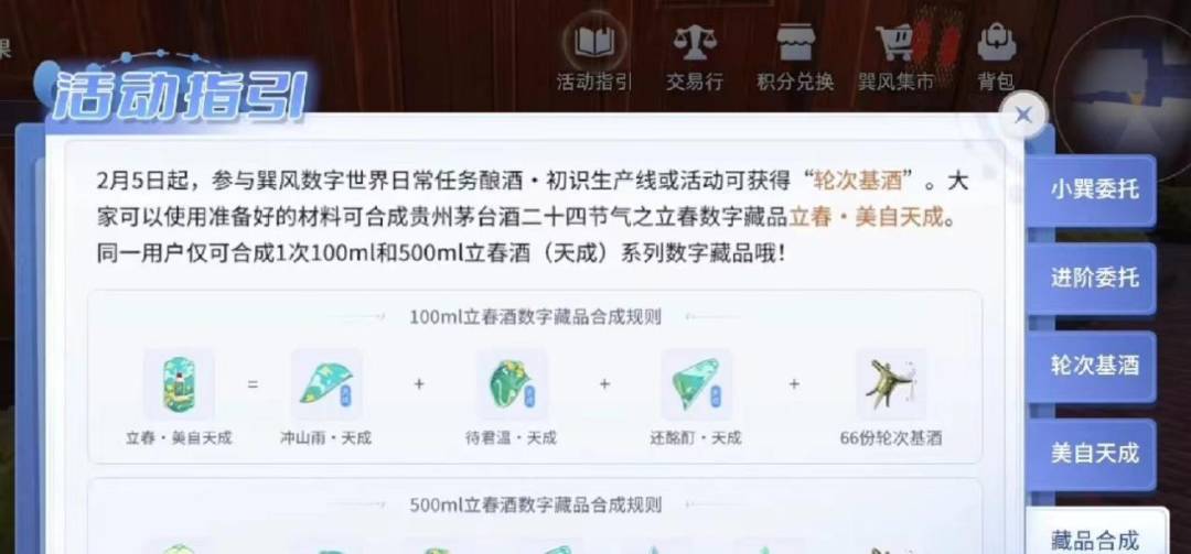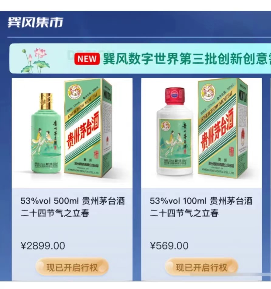 因此,在巽風的玩法設置中,“限量版”的概念被反復強調。在此次茅臺立春酒的發(fā)售中,巽風APP只投放了11萬份立春酒的數字藏品,其中500ml的有3萬份,100ml的有8萬份。只有成功獲得數字藏品,才有可能搶購實體茅臺酒。可見,不僅數字藏品是限量發(fā)布,茅臺酒的購買名額更是珍稀。