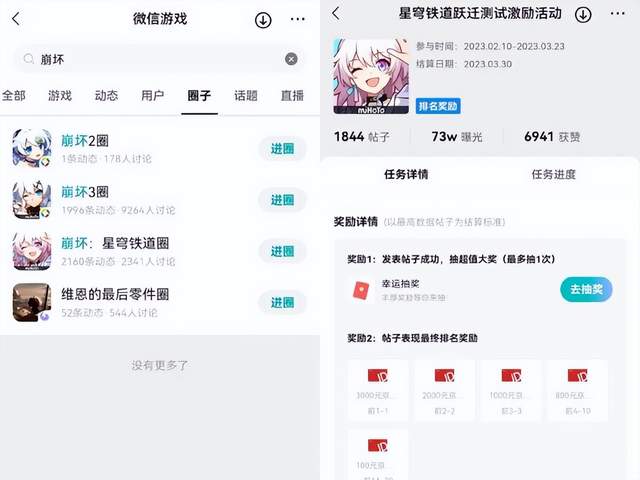 圖/微信圈米哈游游戲圈(左);米哈游新作激勵(lì)活動(dòng)(右)