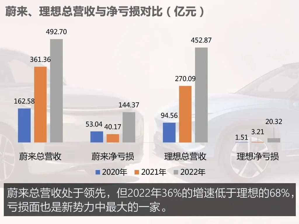而在規(guī)模擴大的同時,蔚來、理想的虧損也在進一步擴大。
