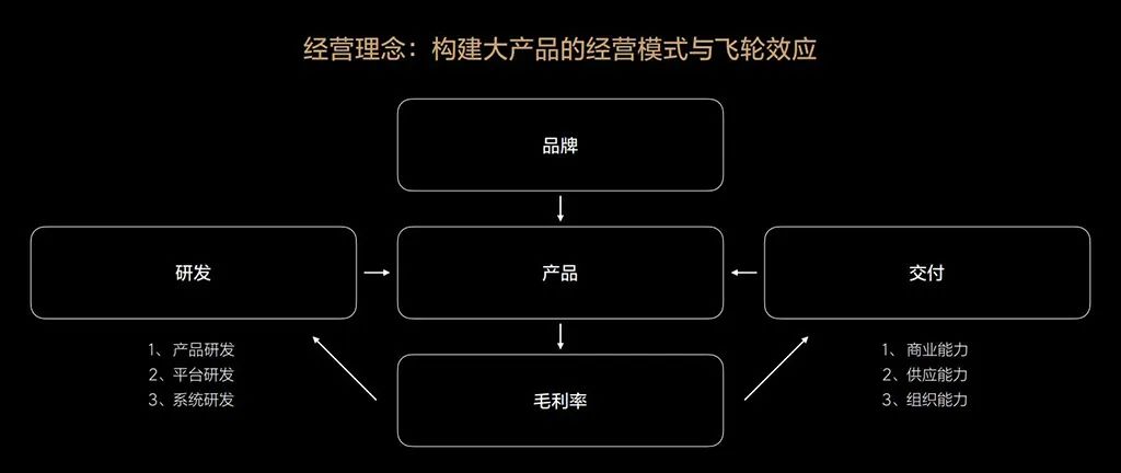 理想用了一套“十字”模型,來做企業(yè)的自我觀察和診斷,并無太多花花繞繞,只有品牌、產(chǎn)品、毛利率、研發(fā)、交付五大維度,以及與之相關(guān)的能力,整體還是圍繞產(chǎn)品體系展開。