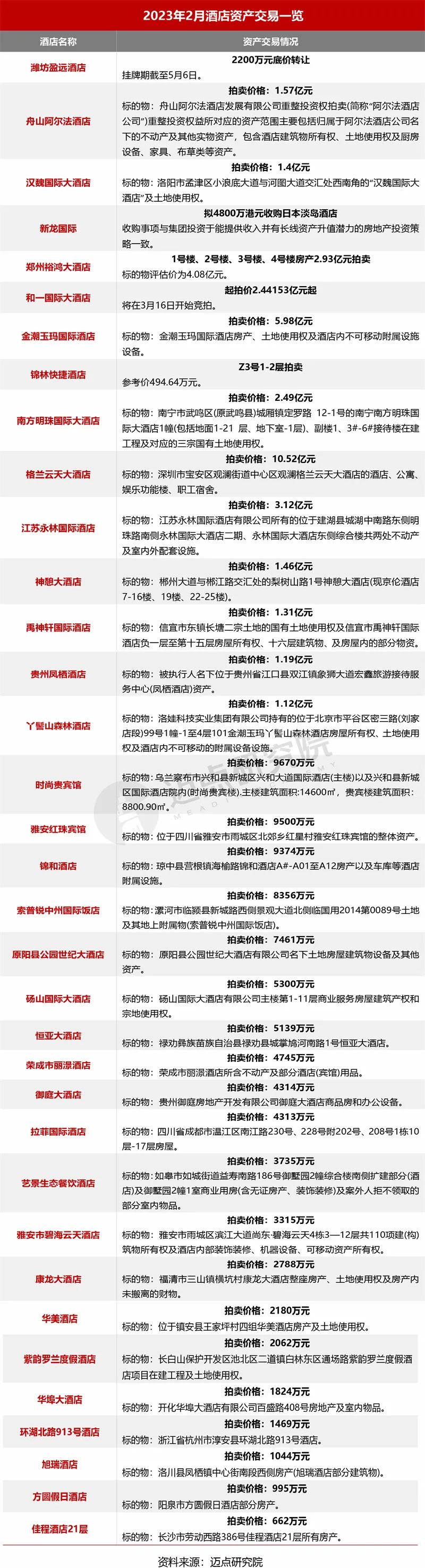 4、酒店資產(chǎn)交易:2月拍賣(mài)不止,酒店資產(chǎn)加速騰挪