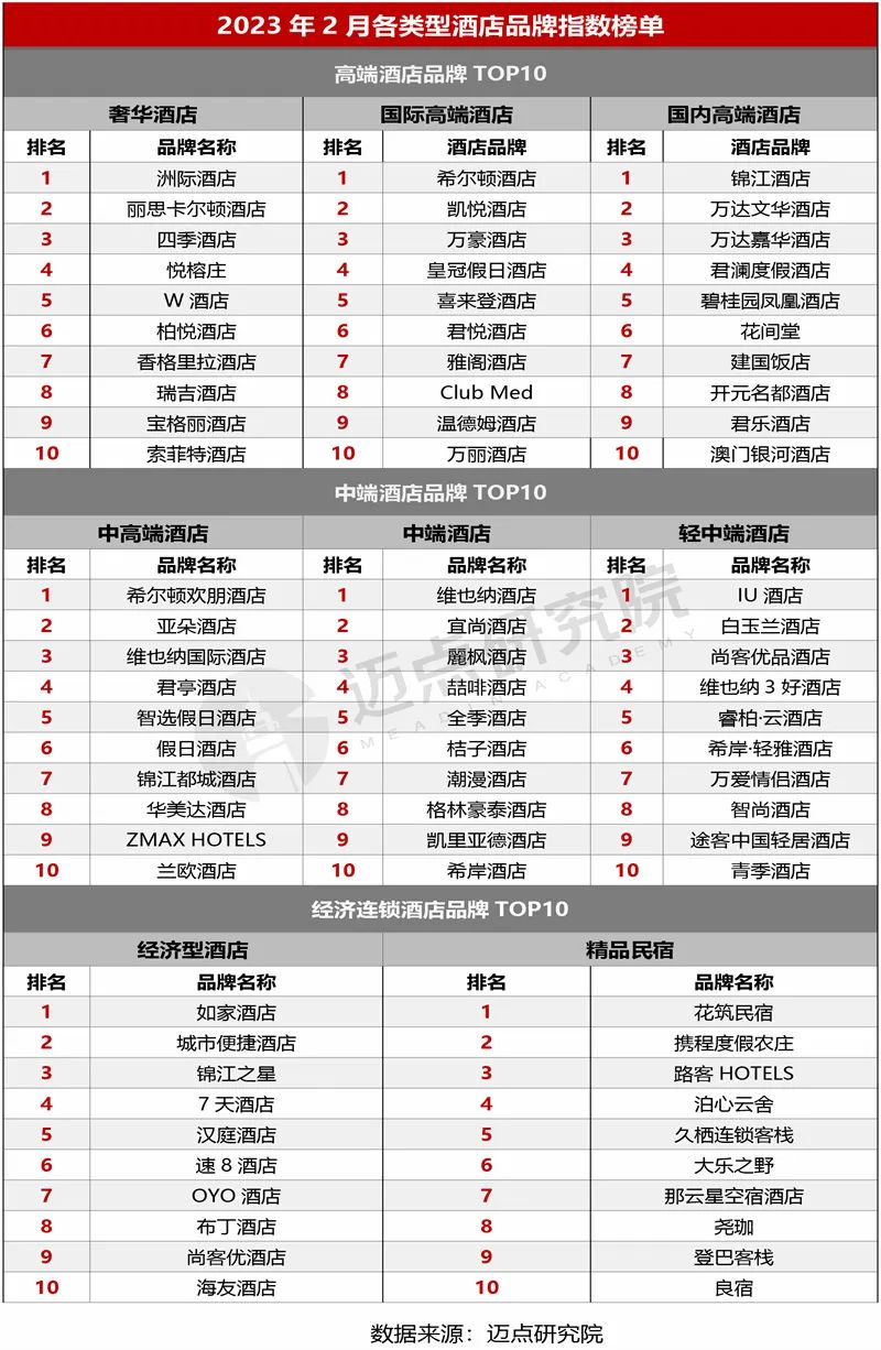 “2023年2月酒店品牌影響力(MBI)100強(qiáng)榜單”數(shù)據(jù)來(lái)源于邁點(diǎn)品牌指數(shù)MBI,根據(jù)2月邁點(diǎn)MBI八大旅游住宿業(yè)品牌類(lèi)目中的1837個(gè)品牌數(shù)據(jù)匯總統(tǒng)計(jì)而成。具體說(shuō)明如下: