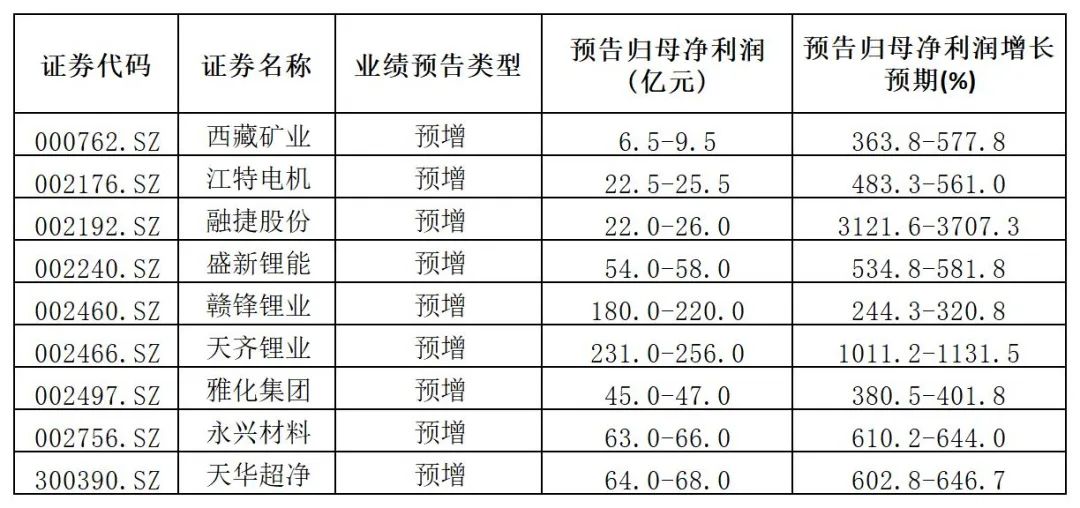 碳酸鋰的需求帶動(dòng)了價(jià)格上漲,量價(jià)齊升也帶動(dòng)了細(xì)分金屬鋰板塊的業(yè)績,根據(jù)申萬三級(jí)細(xì)分的能源金屬中鋰的上市公司來看,9家上市均預(yù)告業(yè)績預(yù)增,其中天齊鋰業(yè)以預(yù)告2022年歸母凈利潤231-256億穩(wěn)居行業(yè)龍頭,贛鋒鋰業(yè)緊隨其后;更夸張的是行業(yè)的業(yè)績?cè)鏊倬?00%以上,增速最快的是融捷股份(002192.SZ),增速達(dá)到了3000%以上,其次是天齊鋰業(yè),2022年歸母凈利潤同比增速在1000%以上。