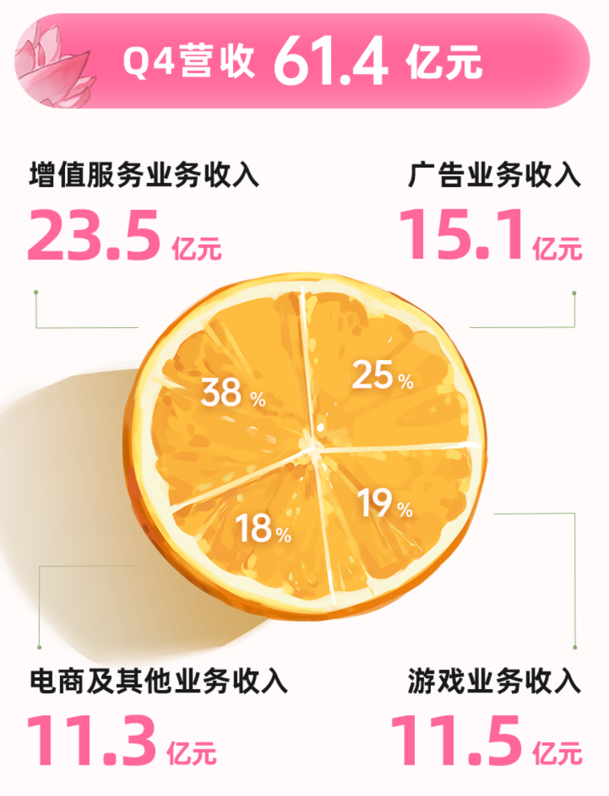 從財報數(shù)據(jù)來看,B站2022年的收入主要來自增值服務(wù)和廣告,其中,包括直播、會員在內(nèi)的增值服務(wù)全年收入87億元,同比增長26%;廣告收入51億元,在2022年廣告環(huán)境整體不溫不火的態(tài)勢下,仍實現(xiàn)12%的同比增長。2022年第四季度,兩者的營收占比合計超60%。