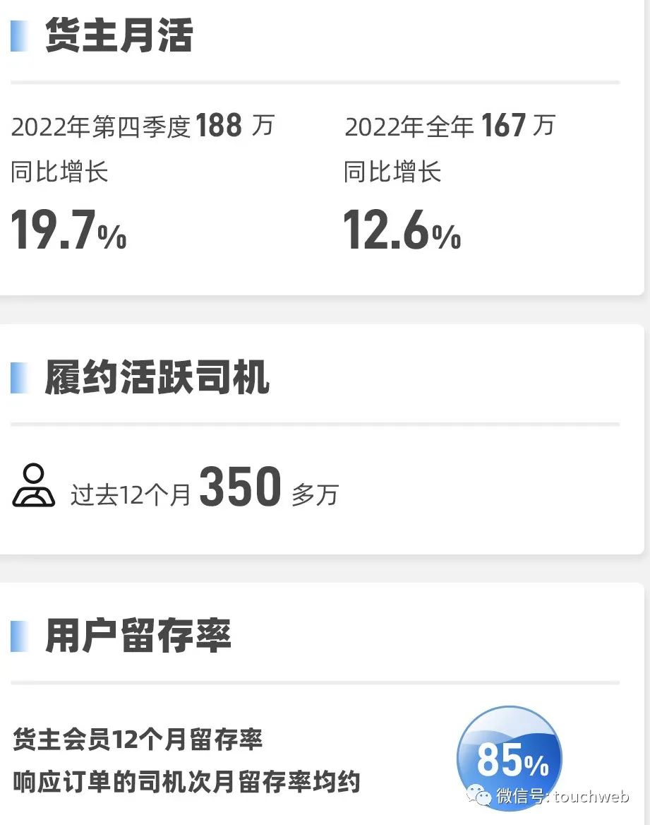 2022年滿幫平均發(fā)貨貨主月活達167萬,同比增長12.6%,其中四季度平均發(fā)貨貨主月活高達188萬,同比增長19.7%。