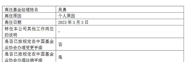 浦銀安盛公告稱,基金經(jīng)理吳勇是因個人原因離職。