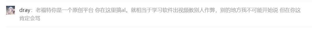 在LOFTER的跟帖中,有一個(gè)觀點(diǎn)很具有代表性:在原創(chuàng)平臺(tái)搞AI,相當(dāng)于學(xué)習(xí)軟件教作弊。