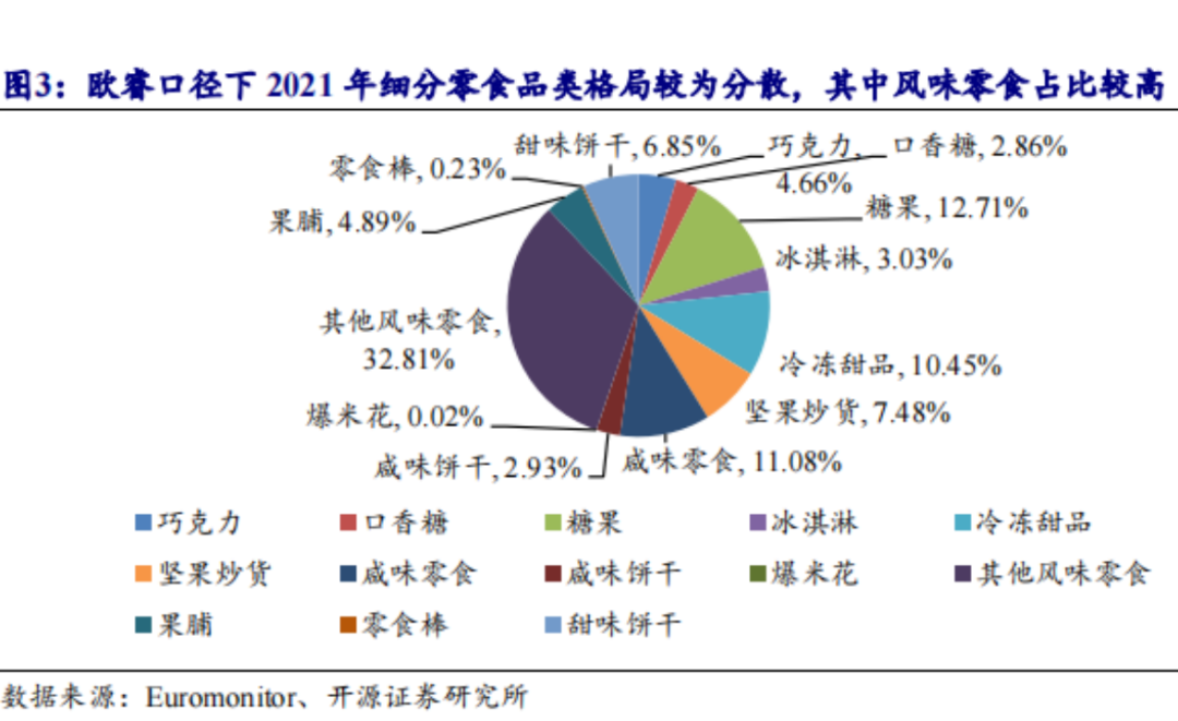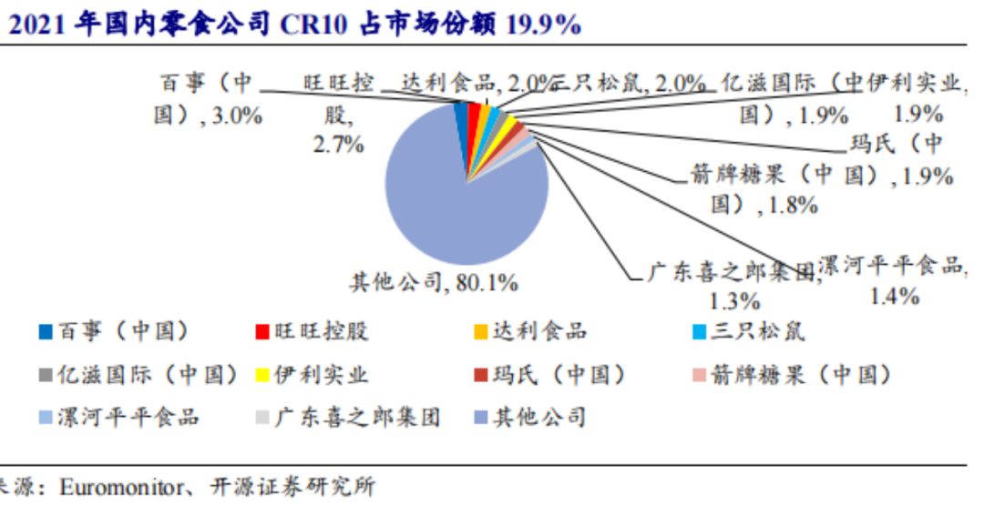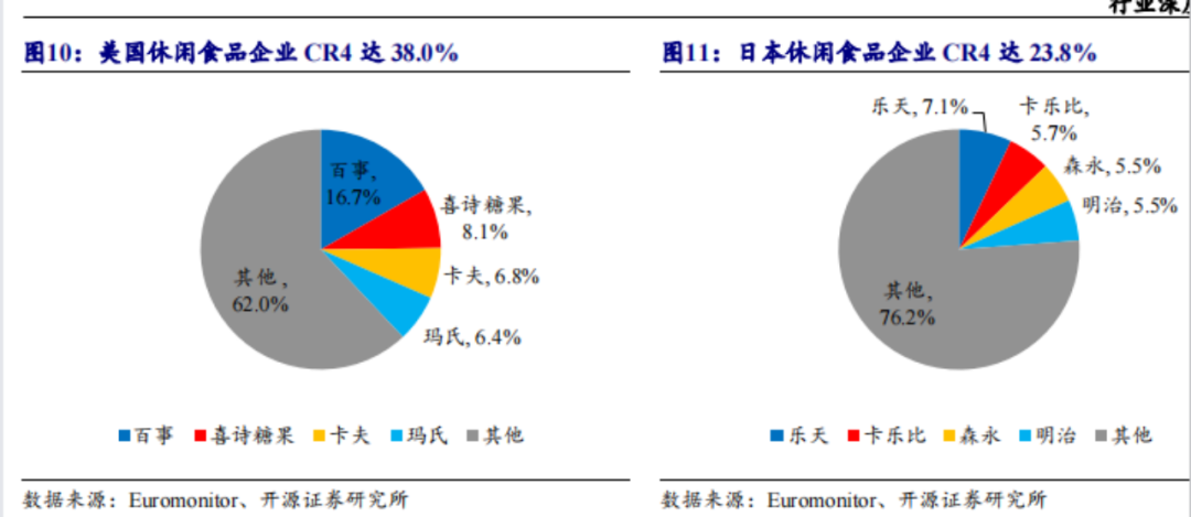 對比海外休閑食品集中度,國內(nèi)市場還有一定的發(fā)展空間。