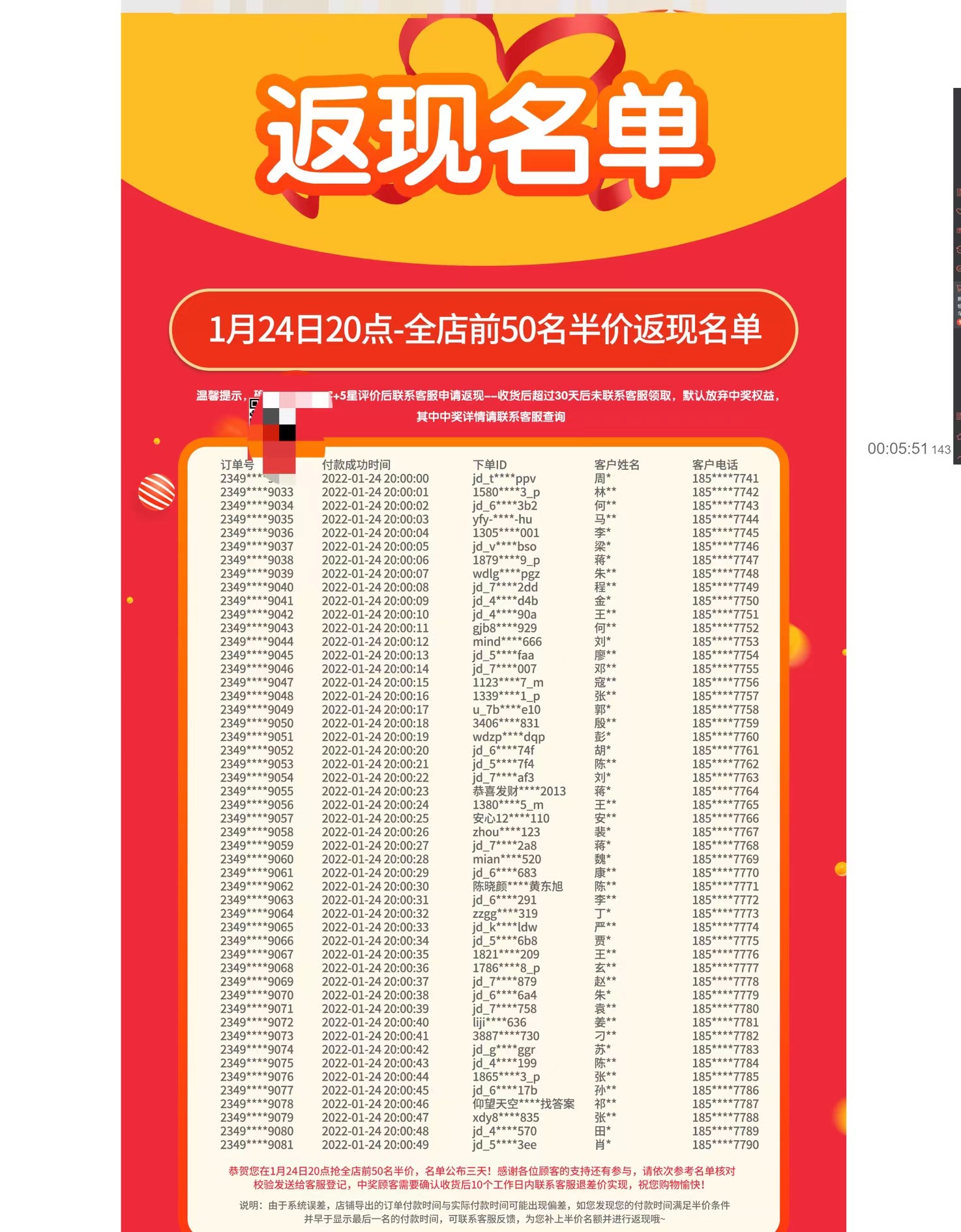 2021年12月11日、2022年1月24日,上海爵品貿(mào)易有限公司在其網(wǎng)店開展“12月11日20點(diǎn)搶全店前200名半價(jià) 封頂2000元”“半價(jià) 1月24日20點(diǎn)搶全店前50名半價(jià) 封頂2000元”有獎(jiǎng)銷售活動(dòng),對(duì)外銷售衛(wèi)浴產(chǎn)品,并宣傳半價(jià)補(bǔ)貼將在中獎(jiǎng)名單公布后發(fā)放。該企業(yè)通過人為干預(yù)將特定人員加入中獎(jiǎng)名單,并將上述名單公示在網(wǎng)店內(nèi),實(shí)際并未給消費(fèi)者發(fā)放半價(jià)退款。