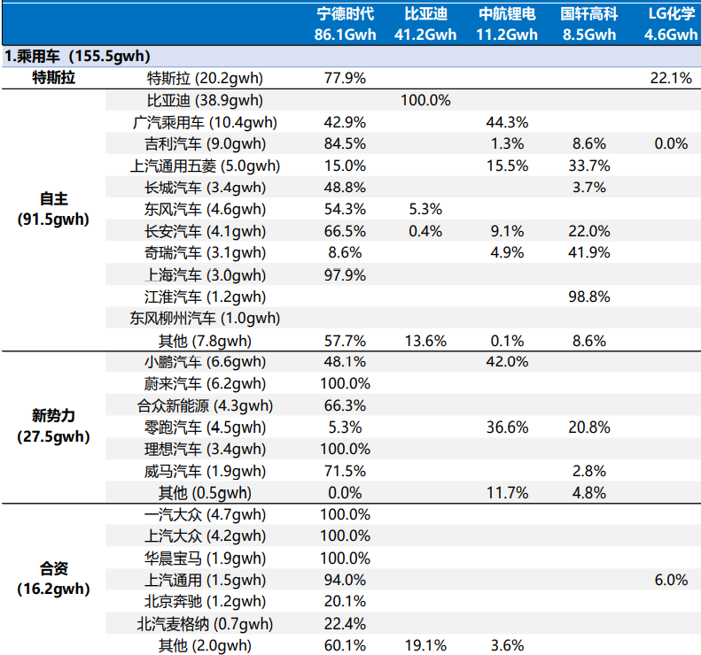 東吳電新:2022年1-9月國(guó)內(nèi)車企&電池配對(duì)情況整理(上險(xiǎn)口徑);來(lái)源:各公司公告
