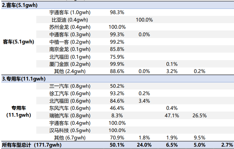從上表可以看出,比亞迪的核心優(yōu)勢(shì),就在于自產(chǎn)自用。去年1-9月,比亞迪在國(guó)內(nèi)上險(xiǎn)口徑裝機(jī)41.2GWh,光自用就有38.9GWh,占比94.4%。