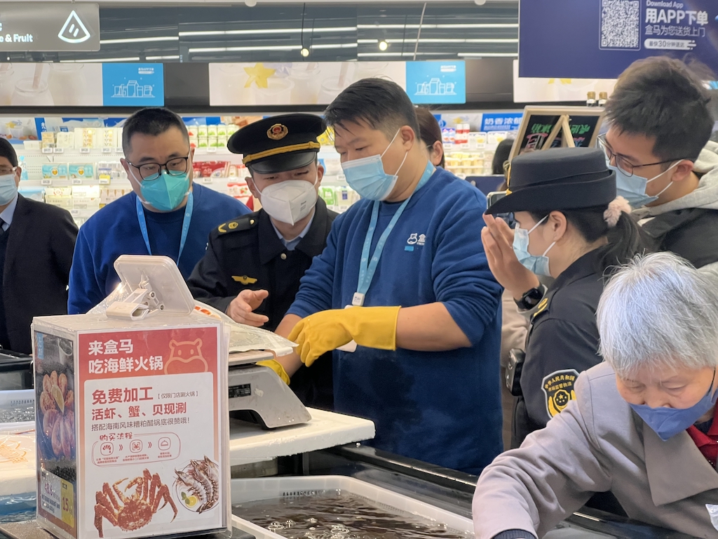 執(zhí)法人員還對“厚貞日式烤肉”、“盒馬打浦橋日月光店”、“來伊份日月光中心店”的商品量、計量器具使用、“去皮”等情況開展了檢查,未發(fā)現(xiàn)違法行為。