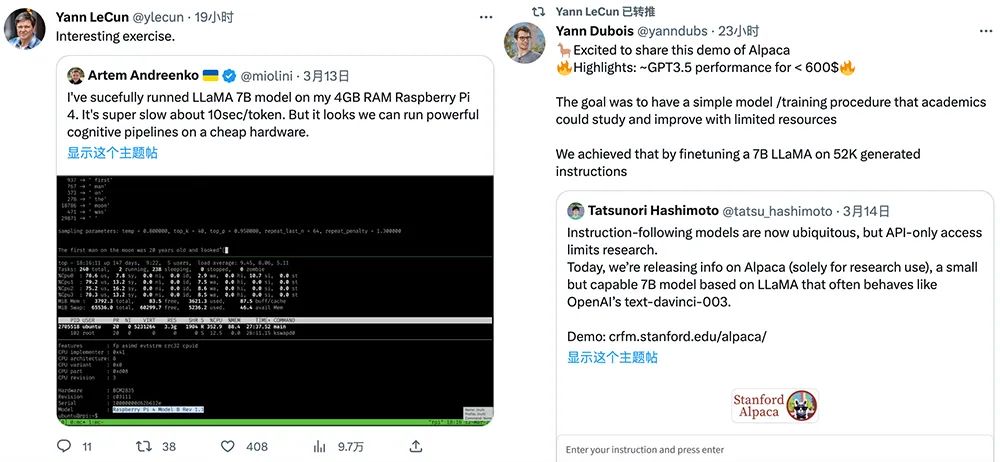 這兩個項目都得到了圖靈獎得主、深度學(xué)習(xí)三巨頭之一、Meta首席AI科學(xué)家楊立昆(Yann LeCun)的轉(zhuǎn)發(fā)支持。