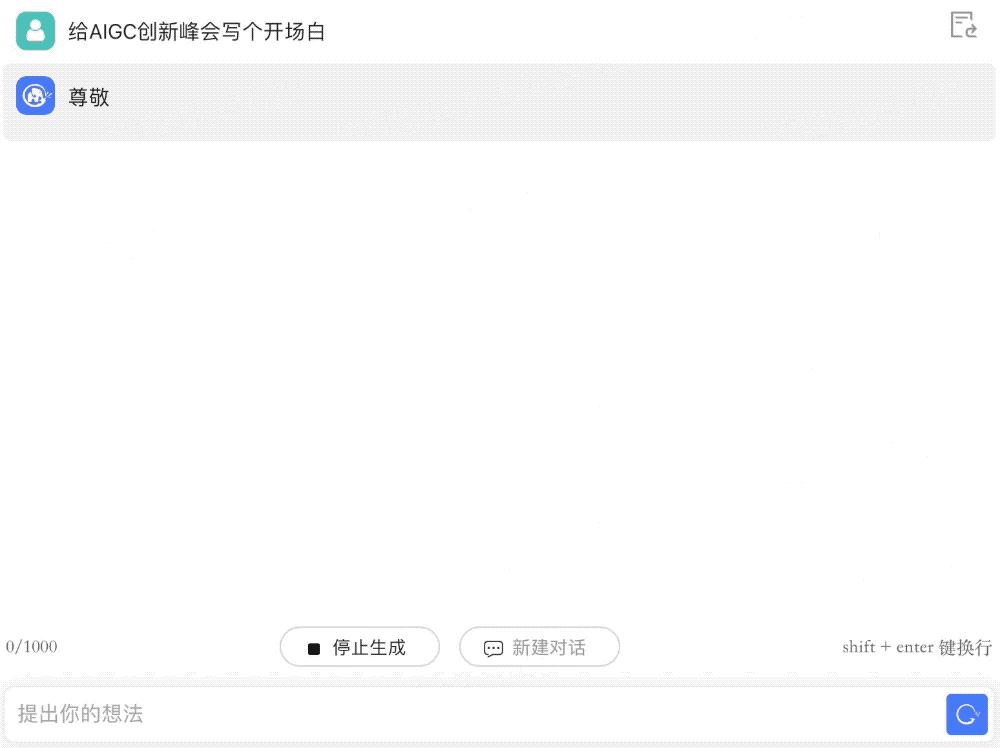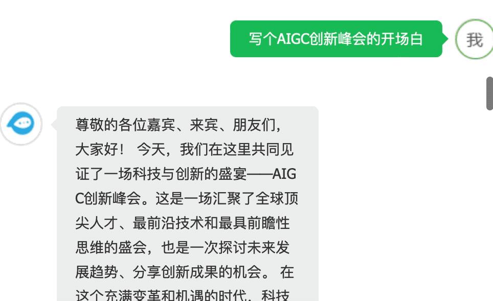 讓它給AIGC創(chuàng)新峰會寫個開場白,成文速度飛快,指出錯誤后能迅速修改。