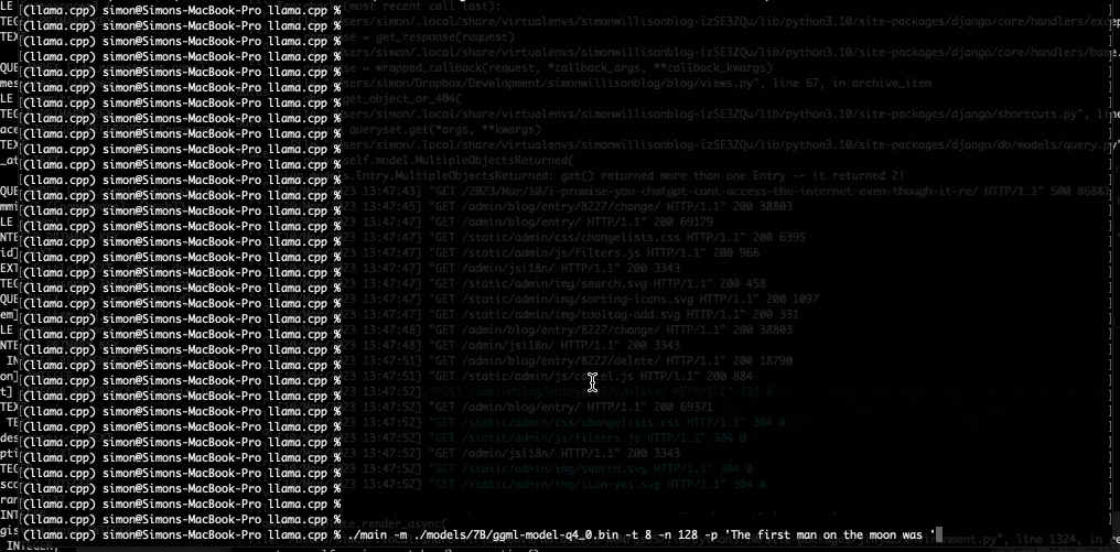 在基于M1/M2芯片的64GB MacBook Pro上跑擁有70億參數(shù)和130億參數(shù)的LLaMA大模型可參見(https://til.simonwillison.net/llms/llama-7b-m2)。