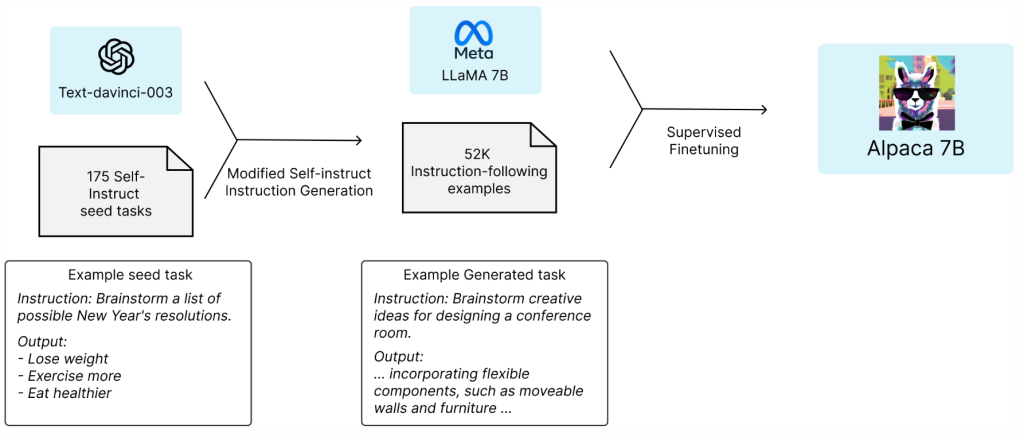 該團(tuán)隊從自生成指令種子集中的175個人工編寫的指令-輸出對開始,然后提示text-davinci-003使用種子集作為上下文示例生成更多的指令,通過簡化生成pipeline來改進(jìn)自生成指令方法,并顯著降低了成本。