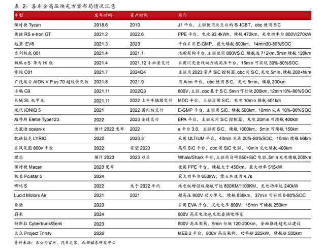 2019年,保時(shí)捷Taycan在全球首次推出800V高電壓電氣架構(gòu),搭載800V直流快充系統(tǒng)并支持350kW大功率快充。隨后,高壓快充路線技術(shù)路線迅速得到了車企的青睞。