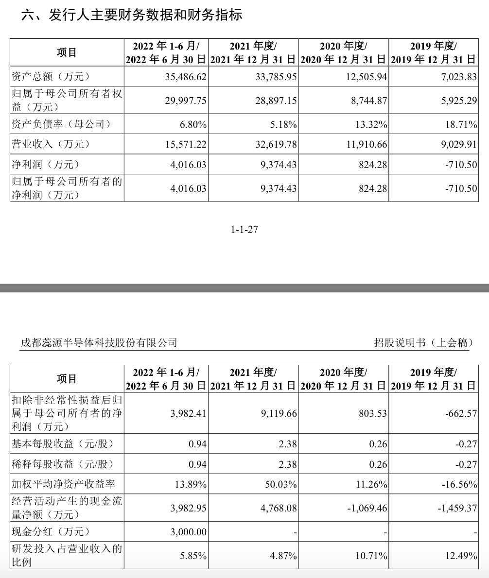 根據申報材料,蕊源科技2021年營業(yè)收入同比增長173.87%,顯著高于同期同行業(yè)可比公司平均水平,2022年1-6月營業(yè)收入同比增長5.97%,低于同行業(yè)可比公司平均水平;蕊源科技預計2022年營業(yè)收入同比減少3.25%至5.41%,扣除非經常性損益后的凈利潤同比減少19.23%至22.88%。