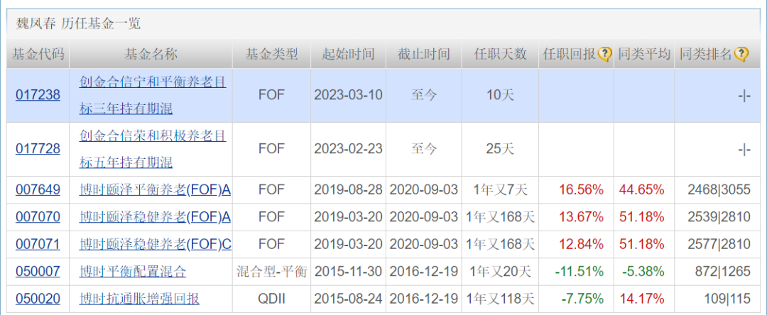 魏鳳春為經(jīng)濟(jì)學(xué)博士,曾先后任職于山東經(jīng)濟(jì)學(xué)院、江南證券、清華大學(xué)、中信建投證券(6066.HK)。2011年8月加入博時(shí)基金管理有限公司(下稱“博時(shí)基金”),作為基金經(jīng)理管理了1只QDII(一般指“合格的境內(nèi)機(jī)構(gòu)投資者”)、1只混合型基金、3只FOF養(yǎng)老基金等產(chǎn)品,5只產(chǎn)品管理時(shí)間均未超過1年半。從歷史業(yè)績表現(xiàn)看,3只FOF產(chǎn)品業(yè)績均取得超過10%以上的收益,但與同類平均業(yè)績相差至少2倍,同類排名也處于后部分。