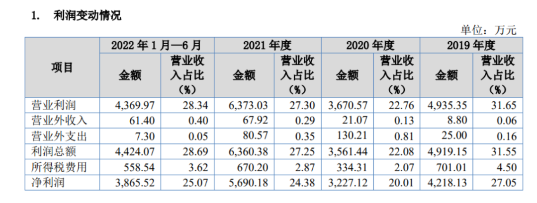 根據(jù)錦波生物公布的最新招股書,2019年到2022上半年,錦波生物的營業(yè)收入在最近4年內(nèi)逐年增長,營收分別為1.56 億元、1.61 億元、2.33 億元、1.54 億元;毛利率分別為84.69%、80.01%與82.29%、83.4%;歸屬于母公司所有者的凈利潤分別為 4526.83 萬元、3194.84 萬元、5738.73 萬元、3941.22 萬元。