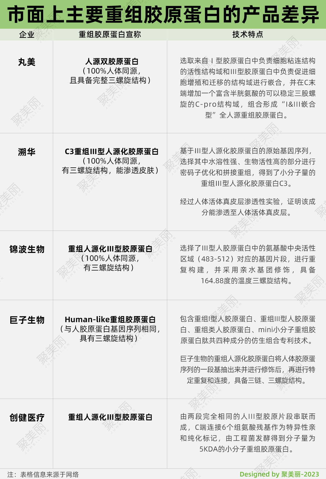 聚美麗往期文章《2023年,國貨突破原料封鎖的開端之年?丨美妝狠活2023》中曾經(jīng)提到,由于重組人膠原蛋白生產(chǎn)技術(shù)瓶頸無法突破,目前市面上的重組膠原蛋白的類型以重組人源化膠原蛋白為主。