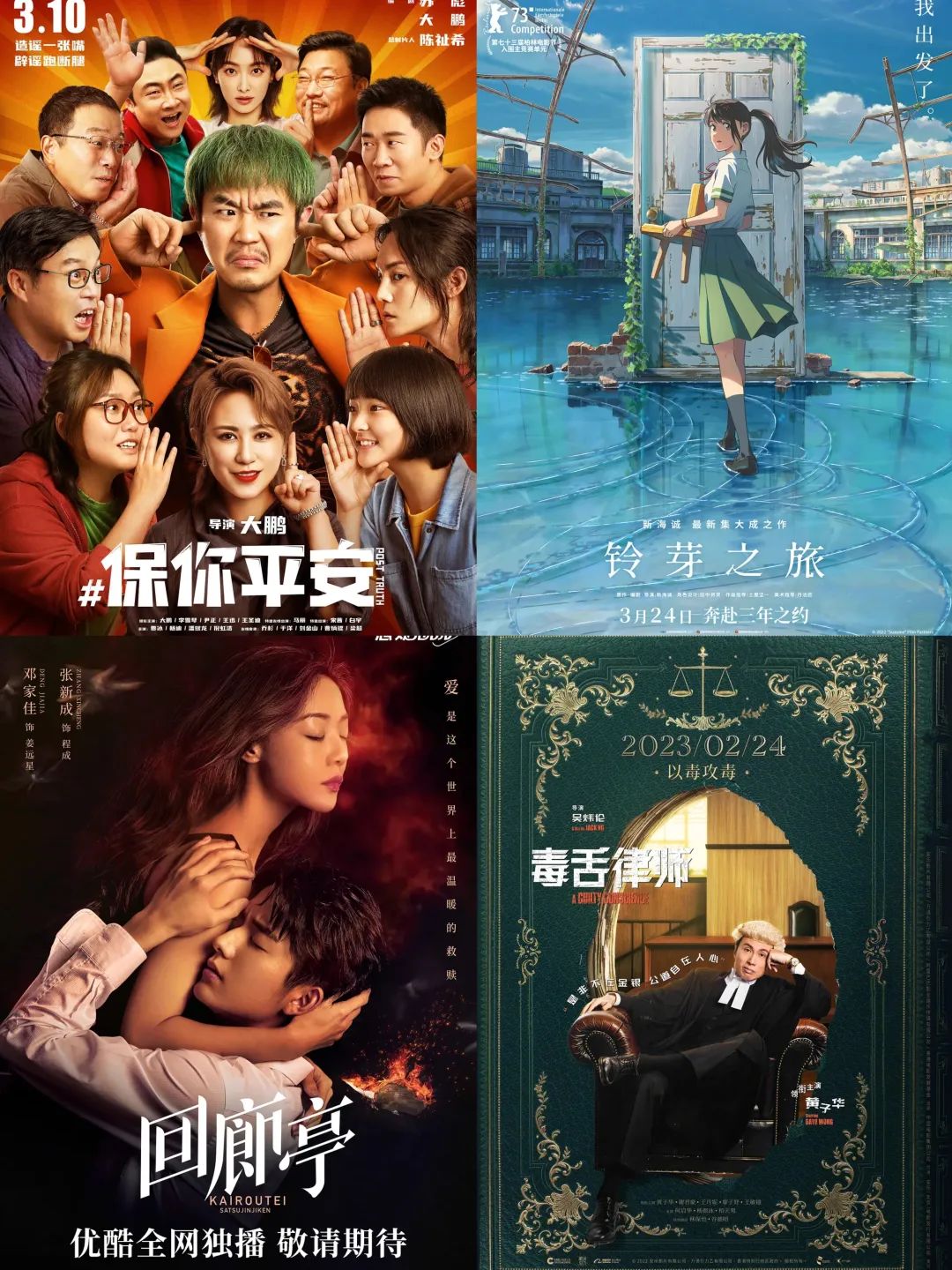 其中, 票房前兩名為5.5億的《保你平安》和4.3億的《鈴芽之旅》。兩部影片豆瓣評(píng)分均在7分以上,具有較強(qiáng)的口碑效應(yīng),目前仍后勁十足,有望為四月票房繼續(xù)助力。第二梯隊(duì)為《回廊亭》與《毒舌律師》,分別收獲2億與1.1億,一共4部破億影片中有3部國(guó)產(chǎn)片。后續(xù)梯隊(duì)則仍由春節(jié)檔影片作為主力,來(lái)自漫威和DC的引進(jìn)片票房則分別僅位列第11名和第12名。