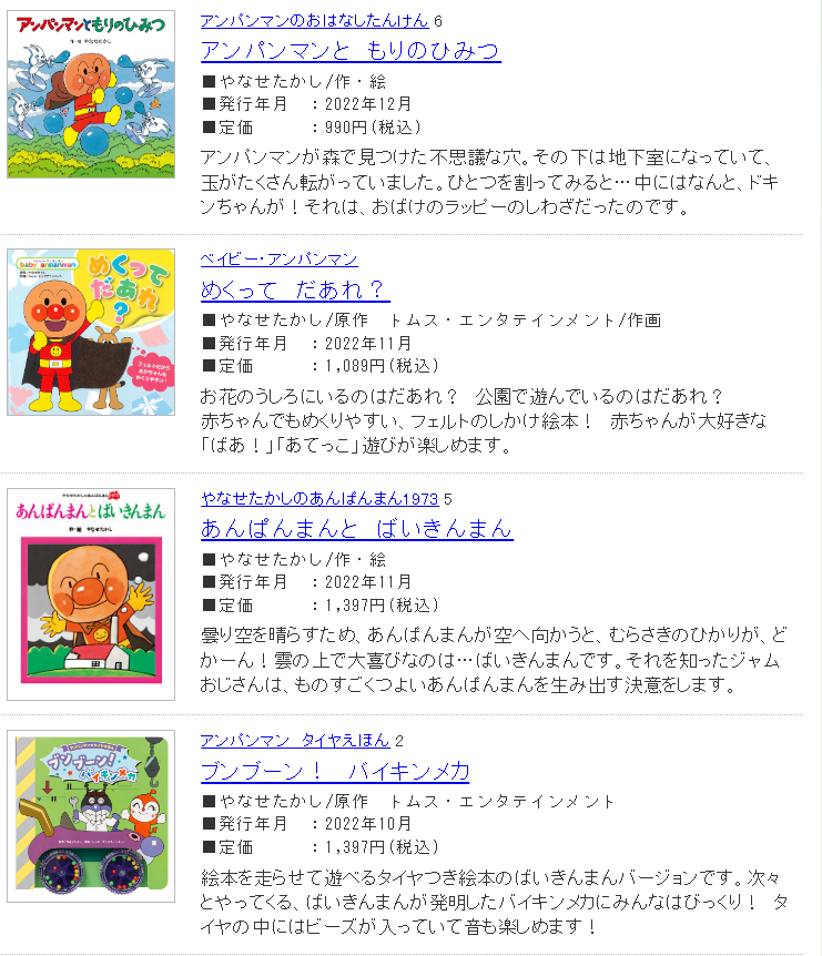 可以看到,面包超人的繪本、動(dòng)畫、劇場(chǎng)版長(zhǎng)年來均保持著頻繁更新,這是維持人氣的要素。