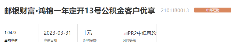 13號理財產(chǎn)品是中郵理財于2021年4月12日發(fā)售的一款固收類理財產(chǎn)品,為R2中低風(fēng)險。