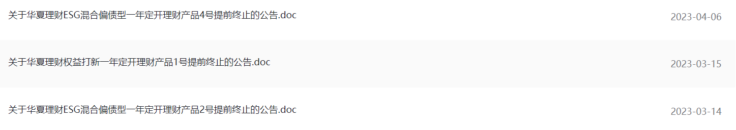 界面新聞梳理發(fā)現(xiàn),截至目前,已有中郵理財、交銀理財、華夏理財、信銀理財、寧銀理財、中原銀行、盛京銀行等多家銀行及理財公司發(fā)布公告,宣布提前終止部分理財產(chǎn)品。僅3月以來就有近40條相關(guān)公告。