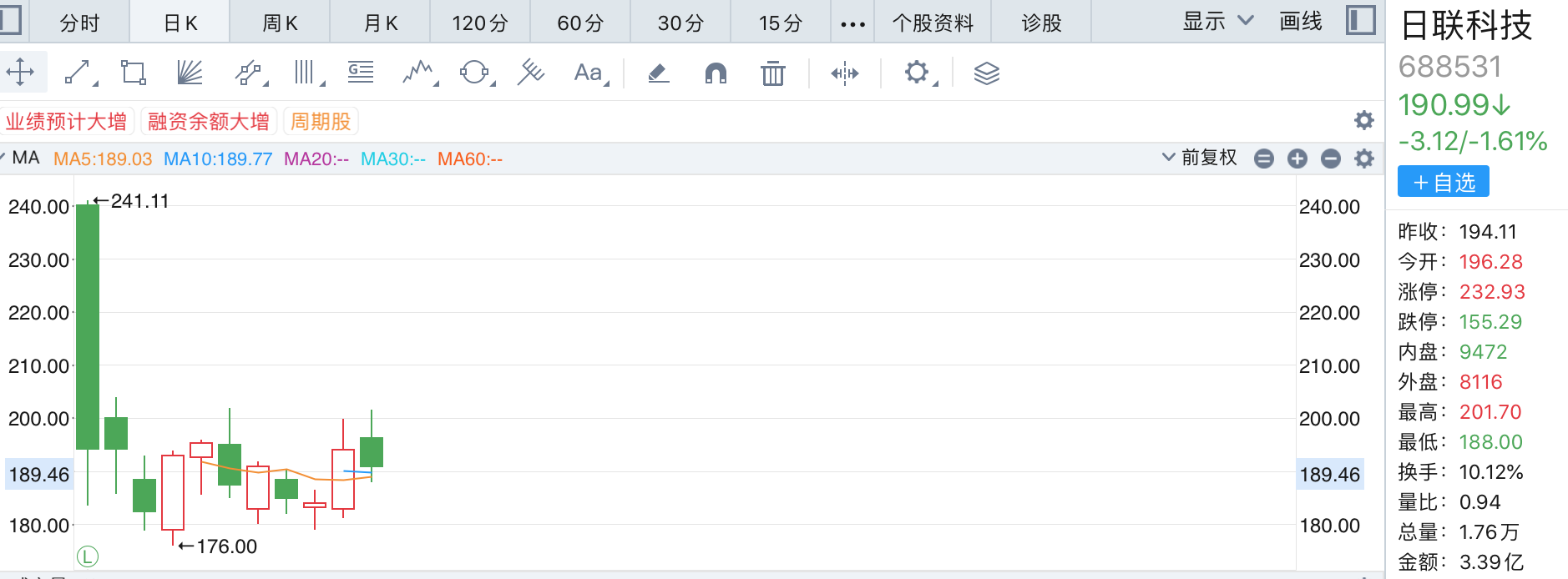 從盤面來看,日聯(lián)科技首日最高上摸241.11元,雖然令瞬時打新收益數(shù)據(jù)可觀,但其股價高開低走,畫出了長陰K線,后幾日的表現(xiàn)也顯得萎靡,最低下摸176元,距離152.38元的發(fā)行價尚有距離。
