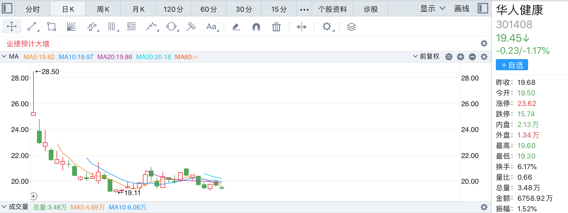 華人健康也是在首日上摸28.5元的高價記錄之后,便連續(xù)走跌,截至4月17日收盤價格為19.45元,其發(fā)行價為16.24元。
