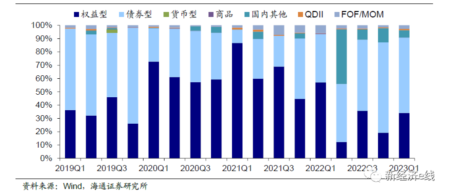 各類型新發(fā)基金規(guī)模占比(2019Q1-2023Q1)