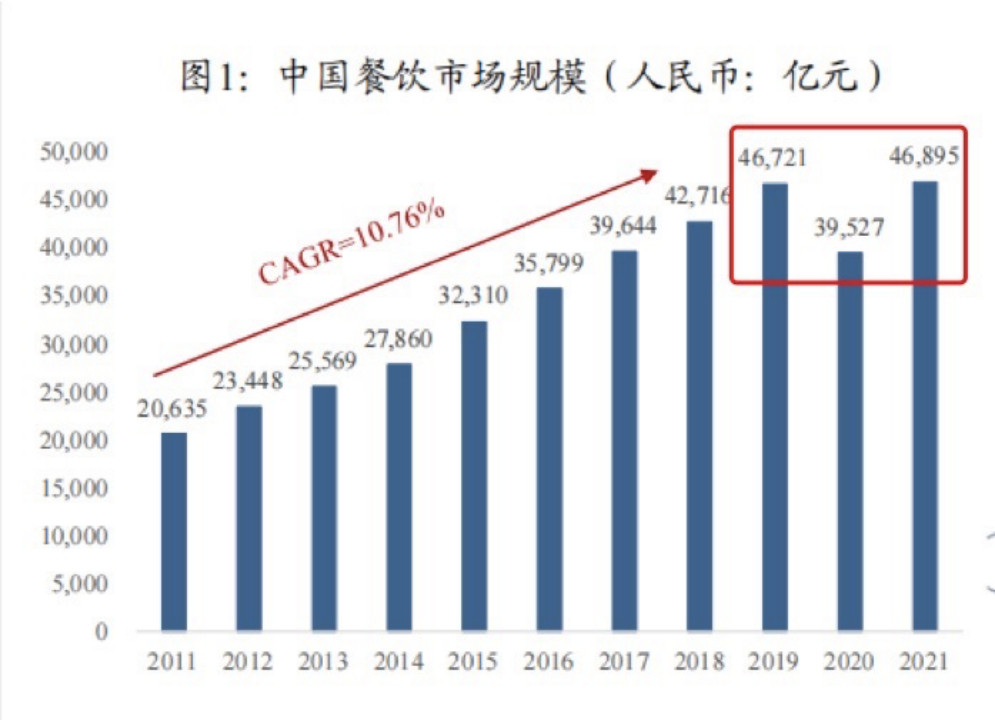 從2011年-2019年,中國餐飲市場年復(fù)合增長率達到10.76%。