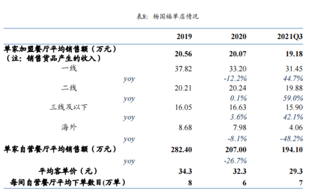 例如楊國福,在2019年時,疫情剛開始,他們在一線城市的單家自營餐廳平均銷售額是29.3元。