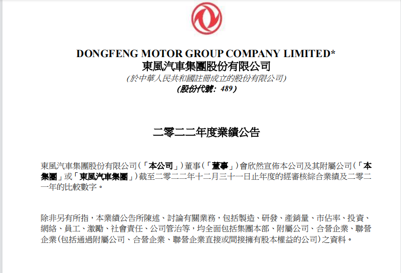 近日,東風(fēng)集團(tuán)發(fā)布了2022年全年業(yè)績報告。