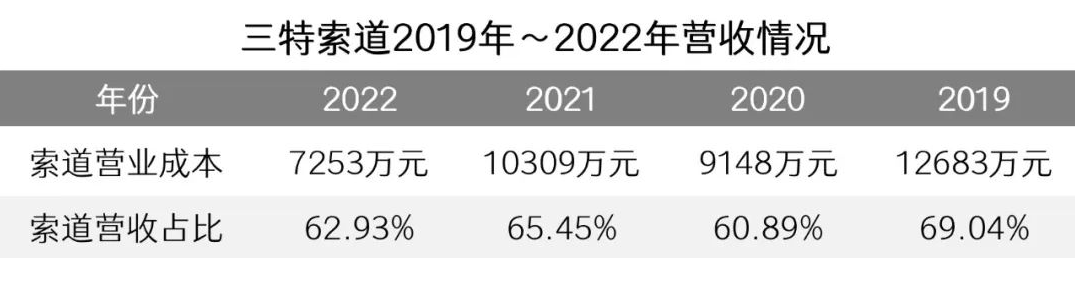 而索道運營本身成本高,回收期長。這就造成一旦索道業(yè)務不景氣,那么整體營收必然受影響,因此營收業(yè)務單一,單靠索道實現(xiàn)盈利的路子顯然行不通,也是造成三特索道虧損的一個重要原因。此后,三特索道也在向生態(tài)樂園轉型,但目前成效不明顯。