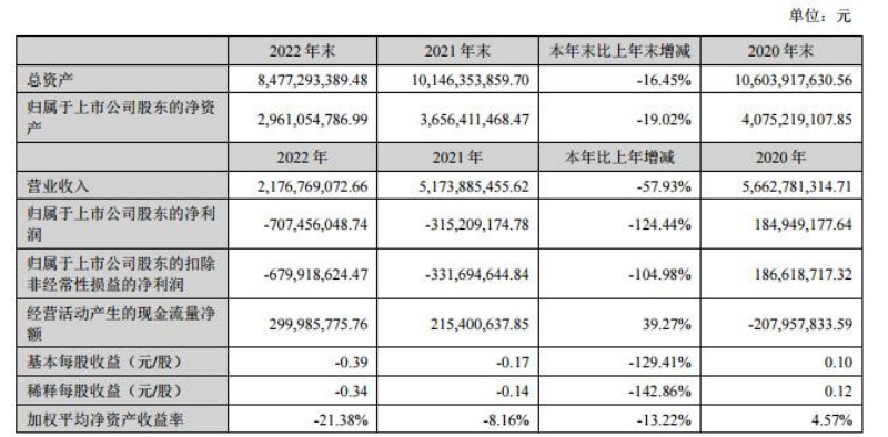 中化巖土于4月17日披露的2022年年度報告顯示,2021年和2022年這兩個虧損年度相互對比,2022年度的營業(yè)收入減少了57.93%,而歸母凈利潤、歸母扣非凈利潤的虧損分別擴大了124.44%、104.98%。
