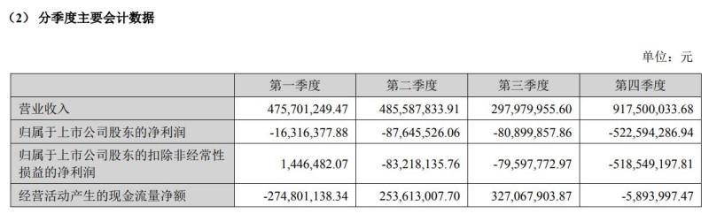 分季度主要數(shù)據(jù)顯示,中化巖土在2022年沒有一個季度是賺錢的,各季度的歸屬于上市公司股東的凈利潤分別為-1631.64萬元、-8764.55萬元、-8089.99萬元和-52259.43萬元。