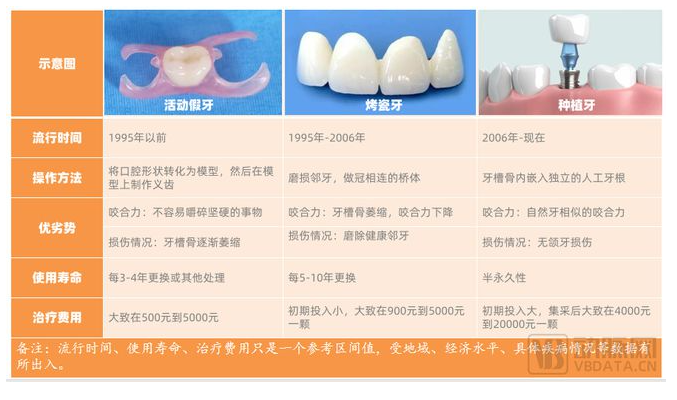 另一面,口腔治療方式和技術(shù)的迭代也讓更多的患者愿意接受口腔的治療?!?4、95年以前,對(duì)于牙齒缺失的患者來說,可選擇的主要是活動(dòng)假牙,之后是烤瓷牙,大概盛行了十多年,06、07年后,北上廣深這樣的城市開始有種植牙的廣泛出現(xiàn)。”彼時(shí)已在民營口腔醫(yī)療機(jī)構(gòu)干了十多年的海鷗,見證了口腔行業(yè)技術(shù)的演變。