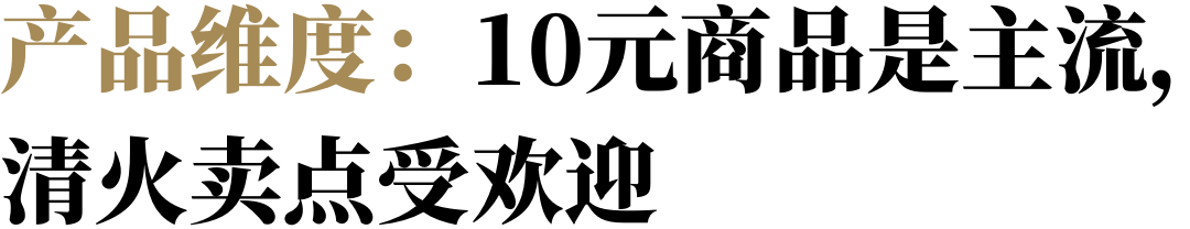 2. 產(chǎn)品維度 10元以下產(chǎn)品是市場主流,銷量占比最高;百元以上價格帶增速迅猛,暗示市場向中高端發(fā)育的趨勢;“清火”賣點(diǎn)同比增長5000%,中醫(yī)概念+西方成分將成為趨勢。
