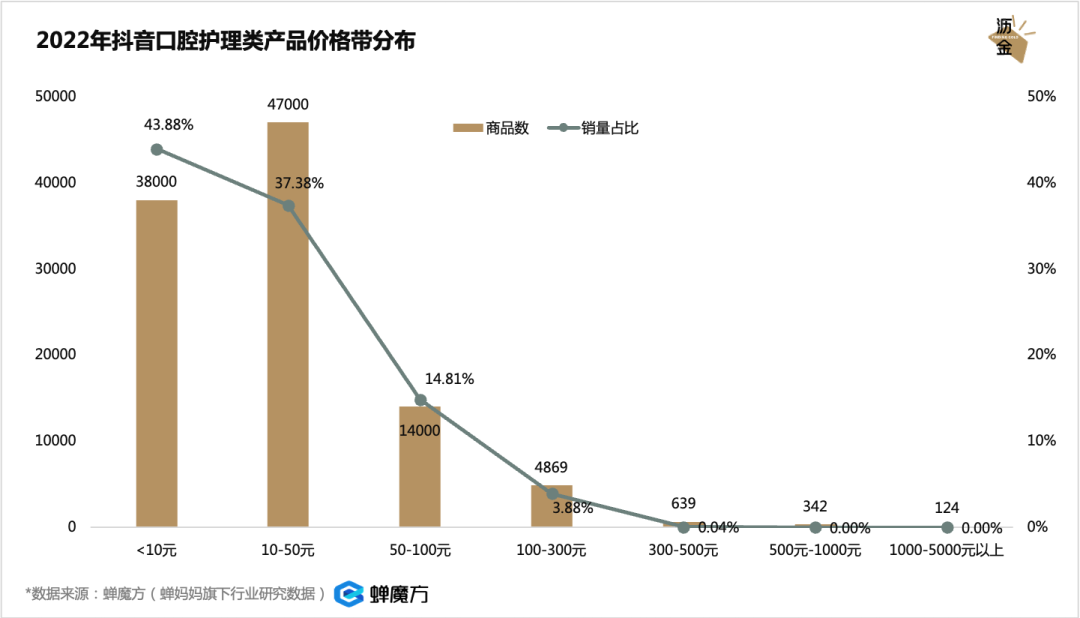 2022年抖音口腔護(hù)理類產(chǎn)品價格帶分布