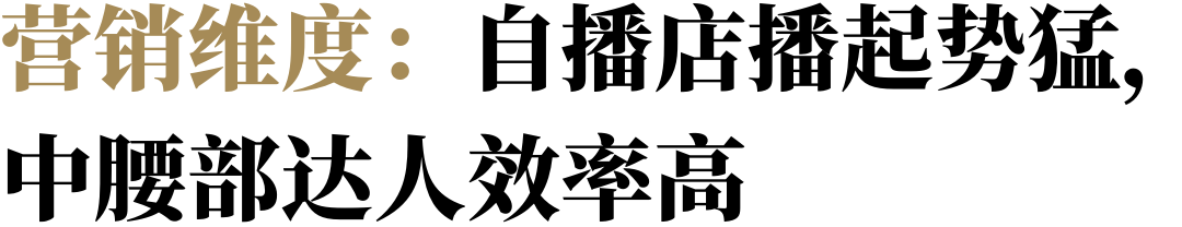 3. 營銷維度 10-100萬粉絲賬號貢獻(xiàn)最多銷售額,投產(chǎn)比和市場價值較大;品牌普遍加大自播和店播投入,達(dá)播占比有所下滑。